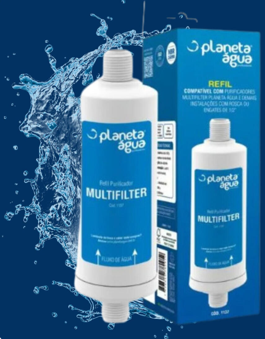 Descrição:A marca Planeta Água é uma marca certificada pelo Inmetro.Refil para Bebedouro, Pia e Cafeteira Planeta Água Multifilter, Multiaplicável, com 03 Etapas de filtragem e promove a Economia de Espaço.O Refil Planeta Água Multifilter possui várias aplicações e é próprio para pontos de uso. É econômico no espaço e possui facilidade de manutenção. O Refil Multifilter, possui a capacidade de reter particulados e reduzir o cloro presentes na água. Este produto pode filtrar até 3 mil litros de água ou 06 meses de uso.