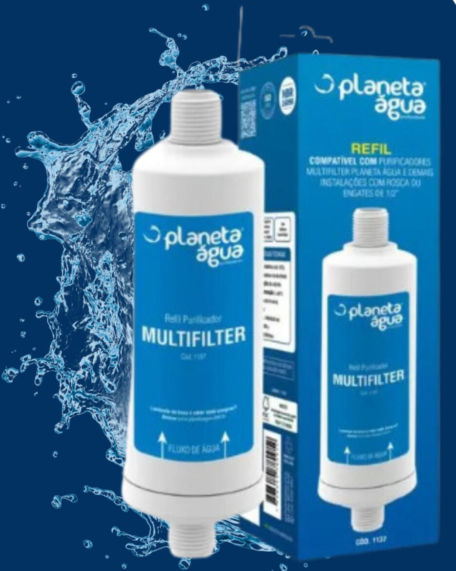 Descrição:A marca Planeta Água é uma marca certificada pelo Inmetro.Refil para Bebedouro, Pia e Cafeteira Planeta Água Multifilter, Multiaplicável, com 03 Etapas de filtragem e promove a Economia de Espaço.O Refil Planeta Água Multifilter possui várias aplicações e é próprio para pontos de uso. É econômico no espaço e possui facilidade de manutenção. O Refil Multifilter, possui a capacidade de reter particulados e reduzir o cloro presentes na água. Este produto pode filtrar até 3 mil litros de água ou 06 meses de uso.